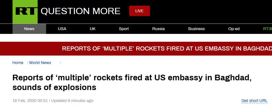 另据法新社援引美国军方消息报道称,美国驻伊拉克大使馆周边遭多枚火箭弹袭击。