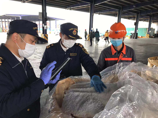 广州海关首票应用疫情防控期间“查验时收发货人可免于到场”新模式的货物在广州南沙通关--冯伟摄