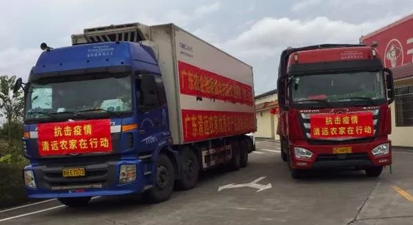 首批由“清远农家”捐赠驰援湖北荆州的民生物资专车天农公司横荷供港加工厂出发。