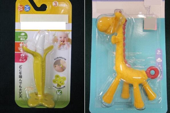 海關發現兩款嬰兒牙膠未能完全附合識別標記及雙語警告標籤的要求。圖:海關