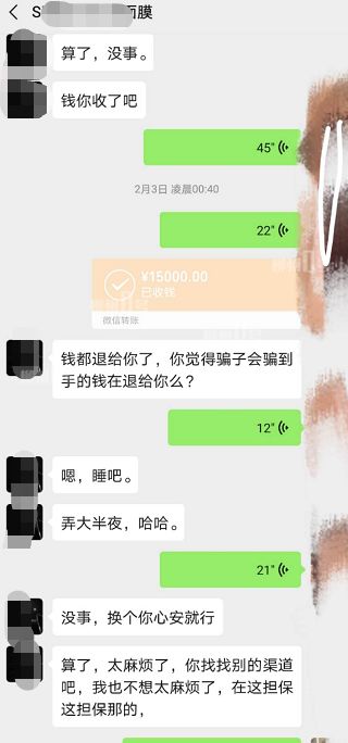 “帅杰”将1.5万元退还给了阿丽,还称自己并不是在挣她的钱,只是好心帮忙,好人没做成,竟被当成骗子 。