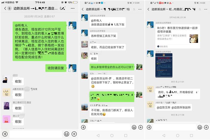 惠东公安港口边防派出所罗国辉是一名驻村辅警,按单位原本轮休安排,此次春节休假的应该是他,本来已在家团圆,准备与亲人共渡佳节的罗国辉,在1月23日晚上,突然看到工作群里关于疫情防控一级响应的工作部署,地处惠州滨海旅游度假区的港口,有众多酒店、民宿,每年春节外来游客众多,面对此次疫情,该所面临空前的防控压力,所长王政建在微信群里动员说:“全所上下必须齐心协力、勇挑重担、迎难而上,坚决啃下疫情防控这块“硬骨头。”作为驻村辅警的罗国辉,深感责任重大,他当即主动请战,结合其在“一村(居)一警”工作中积累的经验,第一时间在家中启动“远程作战”模式:从凌晨起,他通过微信群、电话联系辖区相关旅业负责人,迅速展开排查工作,准确摸清辖区酒店接纳旅客情况。