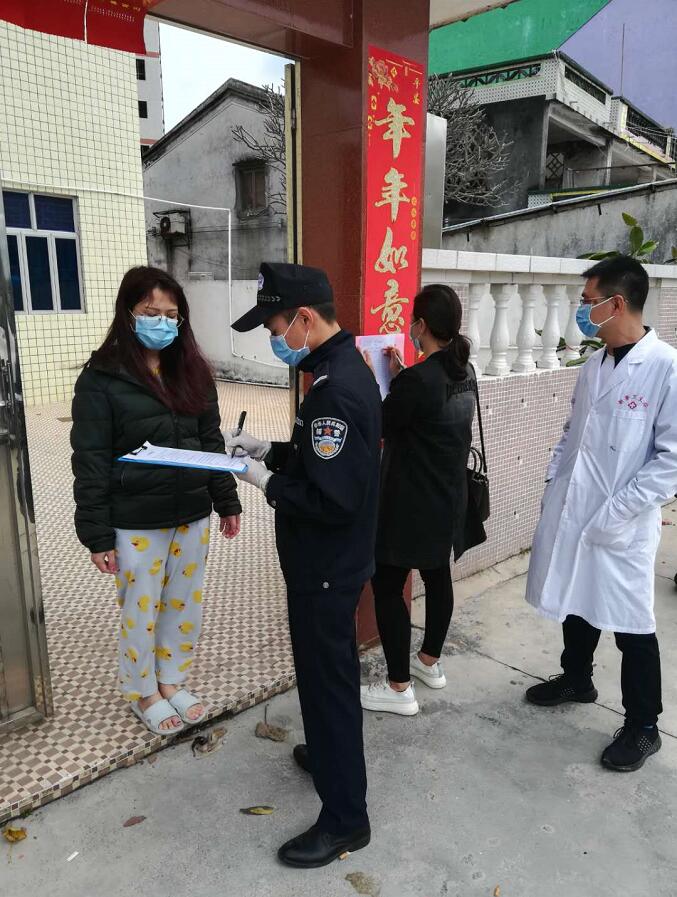 【香港商报网讯】记者卢伟、通讯员谢颖婕报道:“感谢你们这段时间对我们的理解和照顾,你们工作也很辛苦,谢谢你们。相信武汉一定会很快好起来,欢迎你们以后去武汉玩。”这是外地游客向惠东县驻村辅警罗国辉的致谢短信。19日,记者而在惠东县了解到,自肺炎疫情发生以来,惠东公安迅速向该县288个村居委派驻363名驻村警员投入到这场战“疫”中,当中就有辅警罗国辉。他们每一个人都身兼数职:奔走在田间地头,宣传疫情防控知识;频繁地走街串巷,摸排登记涉疫情况;坚守在执勤岗位,做好监测检查工作……他们没有豪言壮语,没有慷慨陈词,他们的足迹踏遍辖区的每个角落,他们的身影穿梭辖区的每个路段,只为阻断病毒传播途径,为守护群众的平安筑牢生命防线。