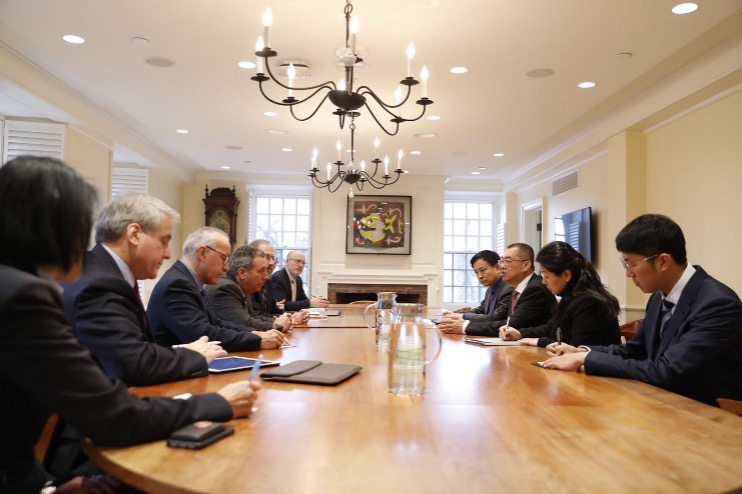據恒大集團官網消息,美國東部時間2月18日上午11時(北京時間2月19日零時),受許家印委派,恒大總裁夏海鈞帶隊到訪哈佛大學, 與哈佛校長Lawrence S.Bacow等就推進新型冠狀病毒肺炎科研攻堅小組工作舉行會談,並轉交許家印給哈佛大學和校長的感謝信。