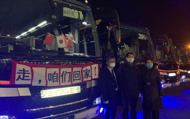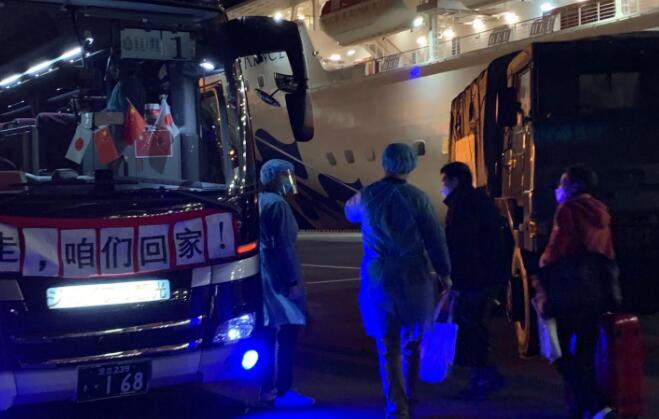 【香港商報網訊】香港特區政府昨晚(19日)發文指,首批在“鑽石公主號”郵輪上的香港居民今日(20日)淩晨乘坐專機回港,預計上午6時抵達香港國際機場。 現場可見,中國駐日本大使館總領事詹孔朝及香港保安局副局長區志光等人在一線協調工作,入境處職員已做好準備,接載下船港人前往羽田機場的大巴車已準備就緒,車頭掛有「走,咱們回家」橫額。
