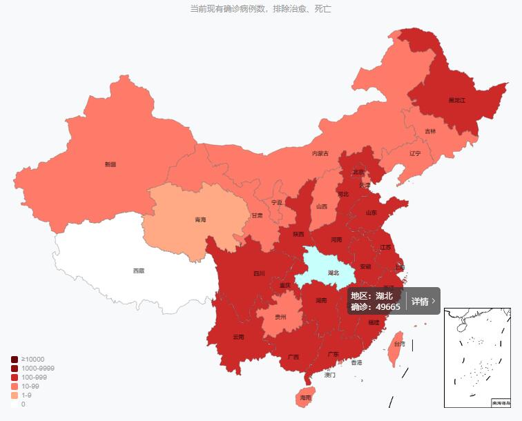 截至2月19日24时,据31个省(自治区、直辖市)和新疆生产建设兵团报告,现有确诊病例56303例(其中重症病例11864例),累计治愈出院病例16155例,累计死亡病例2118例,累计报告确诊病例74576例(江西、河南、云南省各核减1例),现有疑似病例4922例。累计追踪到密切接触者589163人,尚在医学观察的密切接触者126363人。