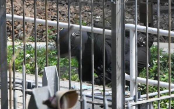 警方爆炸品處理課人員到場檢視可疑物品。圖:星島