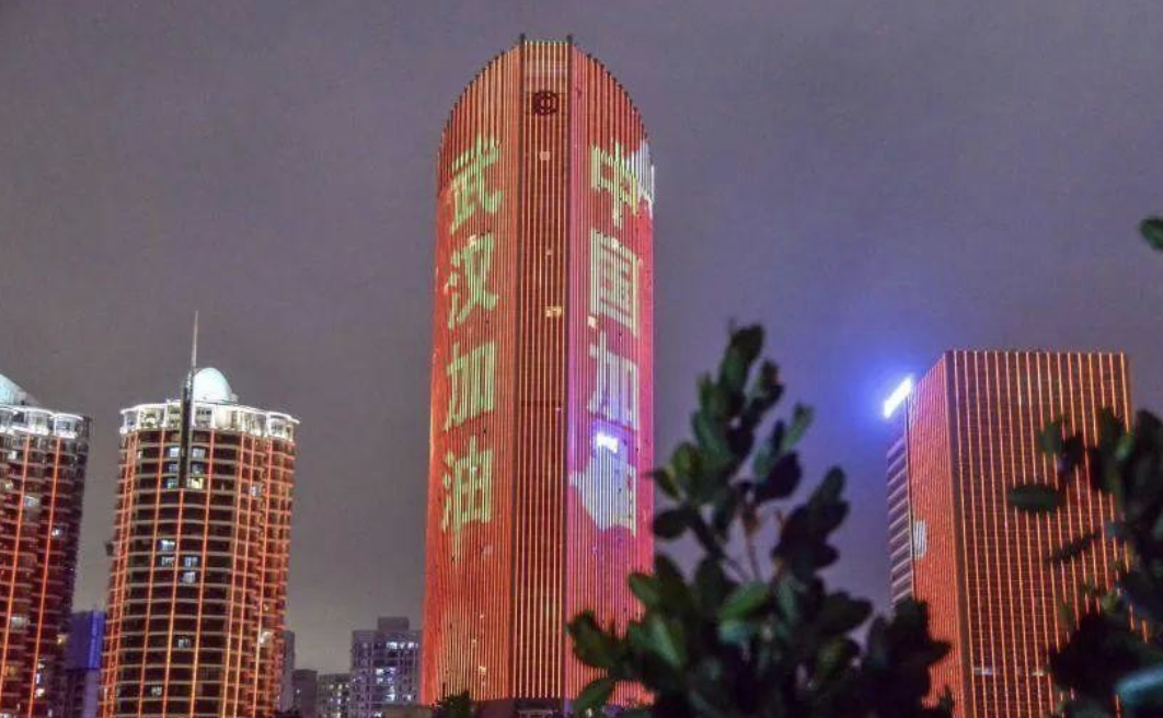 资料图:海口市景观灯打出“武汉加油,中国加油”。洪坚鹏 摄