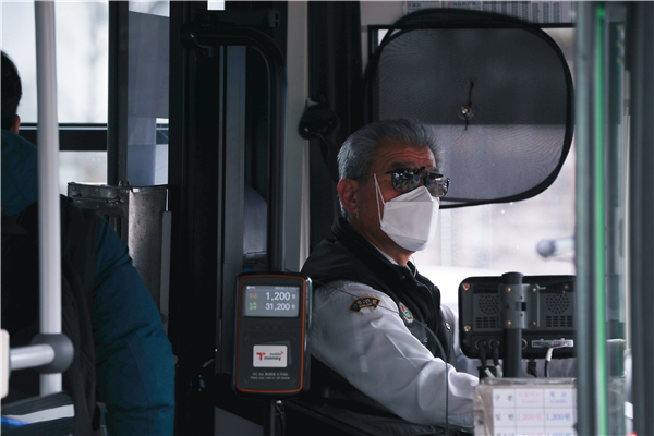 圖為一位佩戴口罩的韓國公交車司機。 新華社