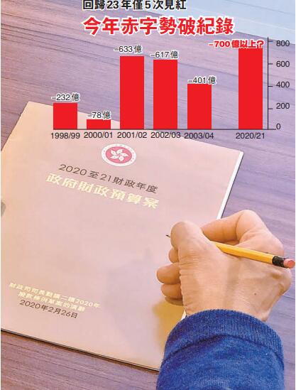 翻查資料,1997回歸後的23年間,香港僅5個財政年度錄得赤字,最嚴重一次是錄得赤字633億元。而按陳茂波說法,2020/21年度的赤字隨時會達700億元。