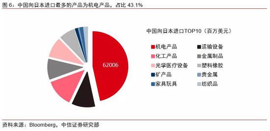 在中国与日韩贸易涉及的行业及产品中,机电产品、运输设备、橡胶塑料、化工产品、金属制品等受日韩出口影响可能较大。中国向日韩进口最多的产品为机电产品(电气设备、机械设备、电子设备等),分别占国内向日韩总进口额的43.1%和54.3%。