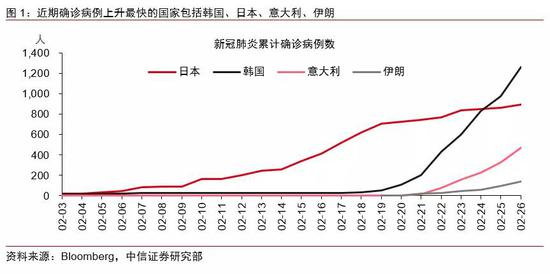 ▌ 日韩疫情风险快速上升,将对全球产业链产生冲击。近期海外疫情爆发引发了市场关注,韩国、日本的新冠肺炎确诊病例上升最快,疫情进展及其影响尤其值得重视,特别是日韩疫情冲击全球产业链的风险正在明显上升。