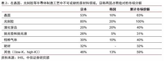 韩国的存储芯片、面板制造和日本的晶圆、光刻胶等半导体制备原材料在全球市场占有绝对领先地位,将更容易传导至下游生产环节。韩国在存储芯片市场占有主导地位,全球第一大和第二大存储芯片厂商——三星和SK海力士都在韩国。目前三星和SK海力士都传出有疑似和确诊病例,若后续由于疫情导致工厂停产则会对全球存储芯片和电子元器件市场产生冲击。而日本在很多半导体制备原材料领域也拥有很高的市场份额,特别是晶圆、光刻胶等半导体制造工艺中不可或缺的原材料,其市场份额都在50%以上。由于部分关键材料几乎由日韩两国垄断,而一旦疫情在这两个国家快速蔓延,将会影响到相关材料企业的正常生产和运输,从而会推升国内部分材料领域涨价,甚至在库存无法满足现有需求时出现断供风险。