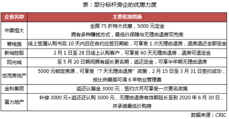 受春節淡季疊加疫情等因素影響,2月以來樓市非常的冷。克而瑞2020年2月房企銷售排行榜榜單顯示,TOP100房企當月銷售同比大幅下滑38%,連碧桂園、萬科、保利、融創等龍頭房企也難逃負增長,當月銷售同比下滑49%、34%、40%、34%,業績“壓力山大”。