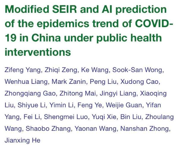 【香港商报网讯】近日,钟南山院士团队在Journal of Thoracic Disease发表“基于SEIR优化模型和AI对公共卫生干预下的中国COVID-19暴发趋势预测”的文章。