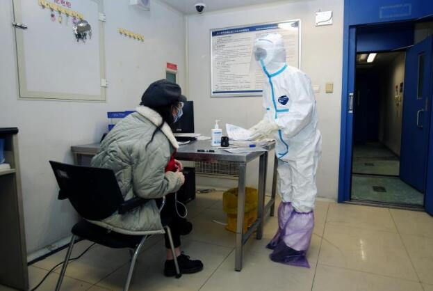 北京海关关在医学排查室内对有症状旅客进行流行病学调查