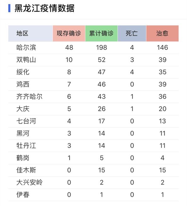 黑龙江的最新疫情数据显示,尚无境外输入性病例。但绝不能抱有侥幸心理,因为黑龙江在境外有一大批务工人员待返回。