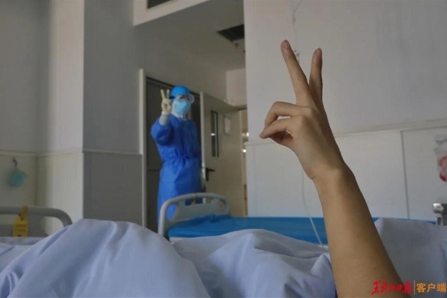 患者与医护人员互动,一起加油!
