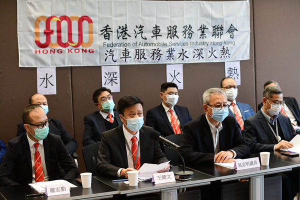 香港汽車服務業聯會召開記者會,申訴政府防疫抗疫基金相關措施未有包括汽車業在內。記者崔俊良攝