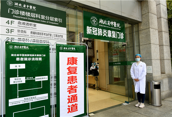 《意見》提出,在突發疫情等緊急情況時,確保先救治、後收費。圖為湖北省中醫院設立的康復患者通道。 中新社