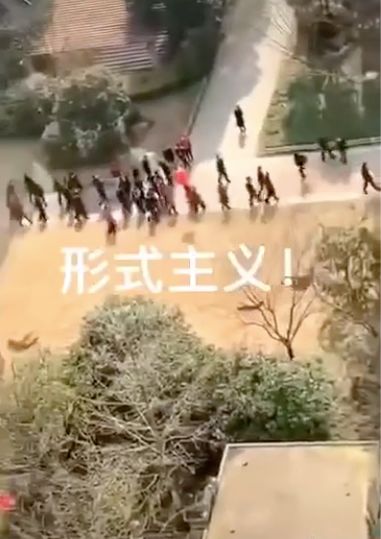 视频中,中央指导组在小区考察时,有居民从家里的窗户向指导组喊话:“假的,假的!”“形式主义!”