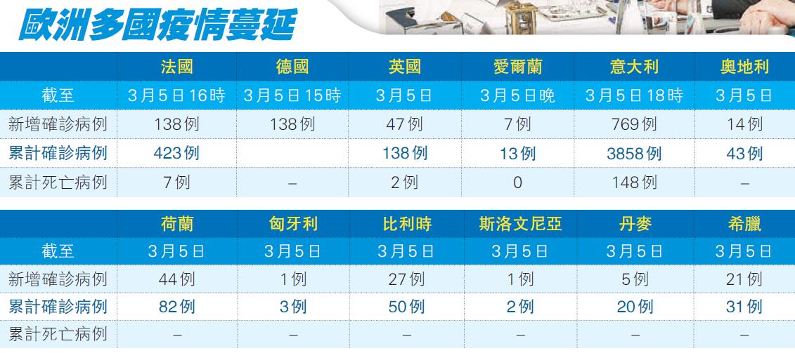 【香港商報网訊】新冠肺炎疫情大規模海外擴散,歐洲尤為嚴重。除意大利外,法國和德國確診病例都有較大幅度增加,英國報告首例死亡病例。受此影響,歐洲股市、原油市場急挫。