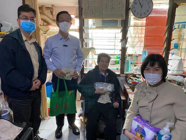 仁愛堂在董事局成員、諮議局委員及外間機構的踴躍捐贈下,透過該堂屬下的服務單位,向社區內的弱勢社群,包括基層家庭、長期病患者、長者、少數族裔及失業人士等分發防疫物資。立法會議員暨仁愛堂諮議局委員劉業強主席、立法會議員林健鋒日前分別聯同屯門民政事務專員馮雅慧與該堂管理層,到該堂服務使用者的居所上門派發包含口罩、消毒搓手液,以及健康食品的愛心福袋,並講解防疫知識,免卻長者舟車勞頓輪候之苦。