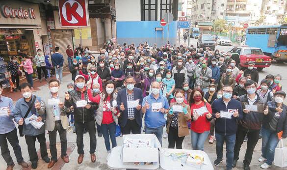 李啟元表示,該會先後在2月12日 、19日、22日及29日四次向區內擁有長者卡或 65歲以上的長者派發口罩,每次逾千個,2月29日還為長者加送了300支酒精搓手液,每次均有義工先後為長者登記派籌,然後派發口罩,秩序良好。