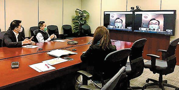 聶德權武漢回港後一直留家工作,圖為他與同事進行視像會議。聶德權facebook圖片