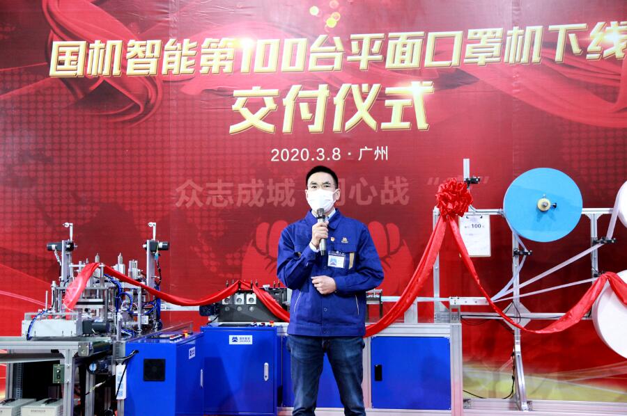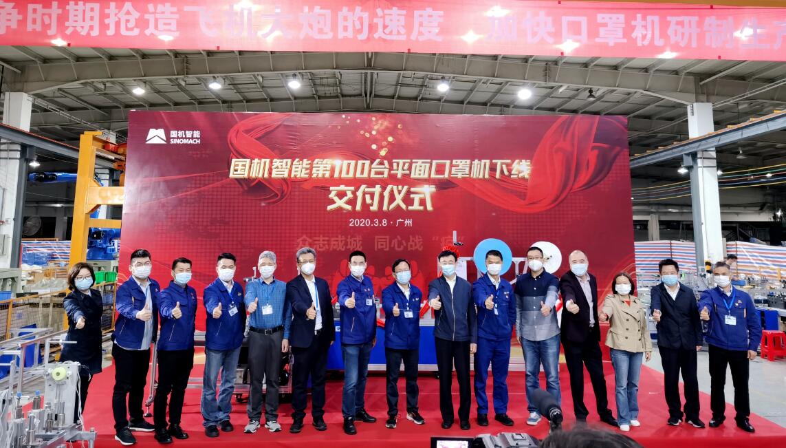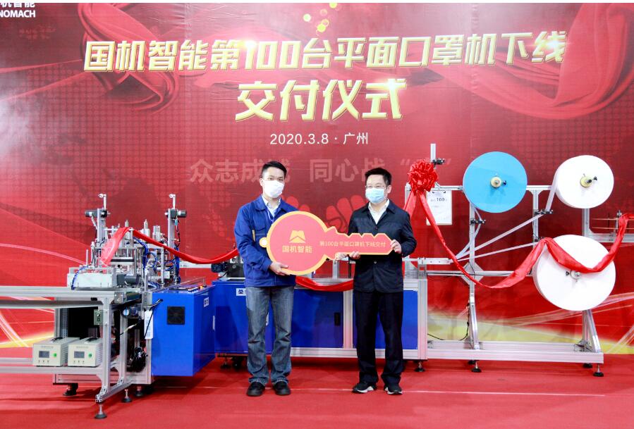 【香港商報訊】記者黃裕勇報導:2月5日,成立專案組部署口罩機專案,3月8日下午5時整,國機智能第100台口罩機下線,口罩機事業部與中南機械有限公司現場進行了口罩機交付。據悉,國機智能2月初接到國機集團和地方政府下達防疫急需設備研製生產任務,在沒有過往經驗、關鍵零部件採購相當困難、口罩機技術人員奇缺、疫情防控壓力很大的情形下,該公司僅用了30天就完成口罩機轉產,並成功實現第100台口罩機下線。