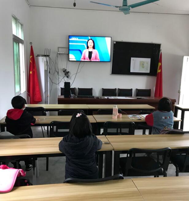 韶關武江區龍歸鎮後坪村網絡信號差,不適合手機、平板電腦線上學習。為讓後坪教學點20名孩子百分百參與線上教學,後坪小學經與村委幹部溝通後,決定利用後坪村綜合文化服務中心作為孩子們的「特殊課堂」,利用中心的網絡電視給孩子們開展線上教育。