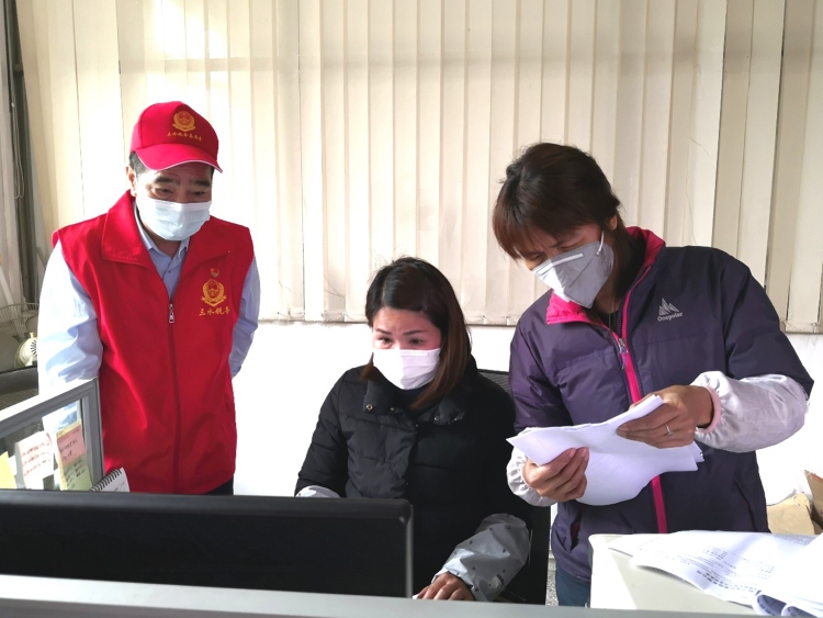 圖為佛山市三水區稅務局組建的復工復產「黨員先鋒隊」為復工企業宣傳階段性減免企業社保費政策。