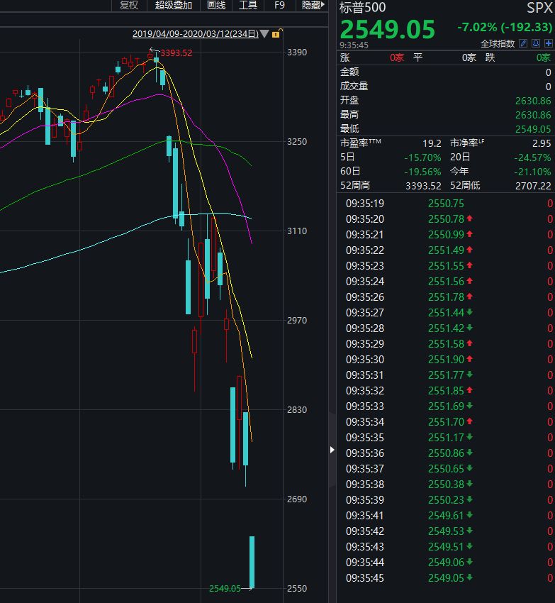 周四美股开盘后迅速触发熔断,投资者对疫情扩散及经济前景忧心忡忡,而美国总统特朗普和美联储并未安抚市场情绪。