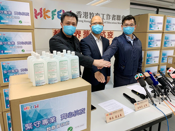 為保護師生健康及為復課做好準備,教聯會昨日在記者會指出,教育界目前仍欠缺防疫物資,擔心復課後會增加病毒傳播風險,故立即搜羅了15萬個成人及小童口罩,以支援教育界防疫。