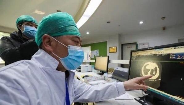 2020年2月23日,武汉市红十字会医院,老范正在查看一位患者的CT影像 记者陈卓 摄