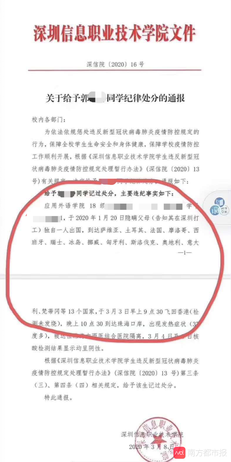 据深圳信息职业技术学院处分通报显示,该女生在2020年1月20日隐瞒父母独自出国,随后达到萨维亚、土耳其、法国、西班牙、瑞士等13个国家。