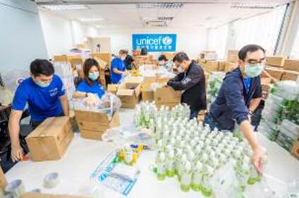 UNICEF HK運用贊助所得的資源,現時已搜集逾135萬件抗疫物資,包括口罩、搓手液、洗衣粉、濕紙巾、沐浴露等。