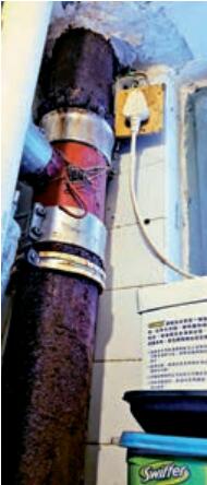 亨泰樓污水渠設於單位內,部分鏽蝕嚴重。譚榮勳供圖