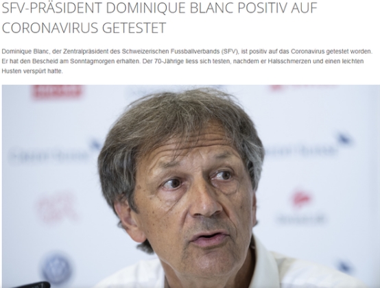 瑞士足协位于伯尔尼的总部即日关闭,直到另行通知。近期与布兰科有过接触的工作人员已得到通知,并将在足协医疗部门的指导下采取必要措施。