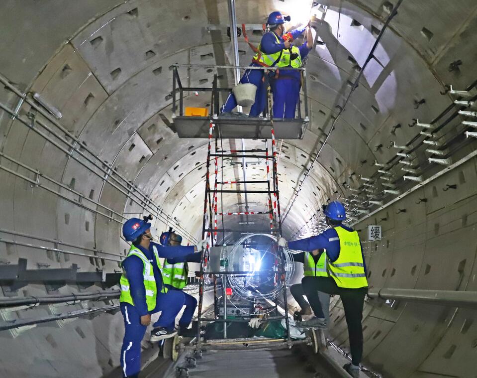 6 魚珠至珠村區間的盾構機正在掘進,盾構管片陸續有序被吊裝入隧道內。 李擎柱攝