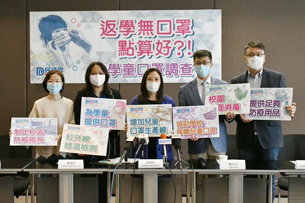 民建聯指,疫情下市面兒童口罩嚴重短缺,以每名學童每日用2個口罩計算,即有50個口罩存量也不足以應付1個月的使用量,若家中不只一個學童,口罩更加不足夠;由於大部分受訪家長表示會用成人口罩代替兒童口罩,但前者尺碼不適用於兒童,即使家長把成人口罩兩邊的繩索打結或調校鬆緊,也有可能出現鬆脫或走位的情況。
