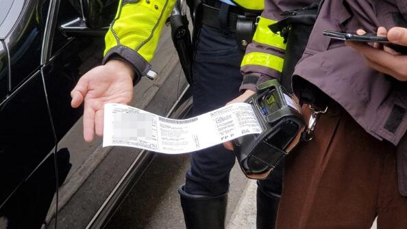今早10時許,有交通督導員到深水埗青山道近通州西街一帶,向違例泊車車輛「炒牌」。如車輛行車證未有二維碼,執法人員會手動在手機輸入車牌號碼後,以手機GPS定位,然後拍攝違例情況,再以隨身攜帶小型打印機發出「電子牛肉乾」,過程較以往手寫快和方便。