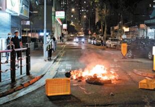 前晚大批黑衣暴徒於元朗一帶集結,期間有人以雜物堵路。本欄圖片均來自中通社