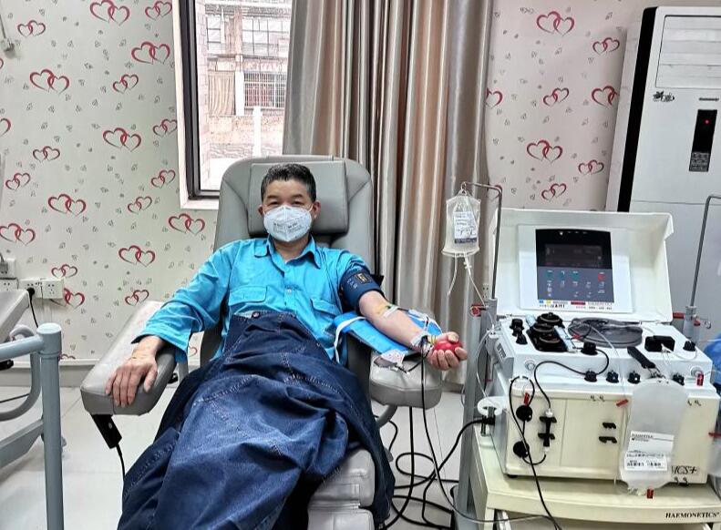 正在獻血的韶關市紅十字會無償獻血志願者服務隊曲江分隊隊長陳亦斌笑著對記者說,「疫情期間醫務人員逆向而行沖在一線,機關事業單位幹部黨員、社區工作人員為我們守護家園,醫院患者也需要大家的幫助。能用自己的鮮血拯救別人的生命,我覺得是件很有意義的事情。」據了解,陳亦斌是全國無償獻血金獎、無償獻血志願者「終生榮譽獎」,廣東省、韶關市「優秀紅十字志願者」「五星級志願者」等多項榮譽獲得者,從2010年開始至今,他無償獻血次數達126次,獻血總量達50200毫升。