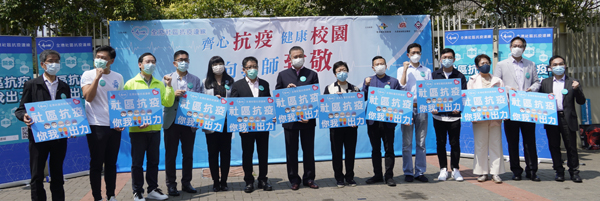 全港社區抗疫連線昨早舉辦 「齊心抗疫、健康校園、向老師致敬」 行動。 記者 馮俊文攝