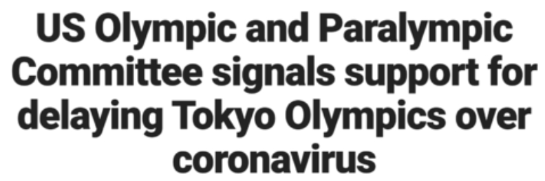 当地时间本周一,美国奥委会和残奥委员会发布一份声明,敦促国际奥委会推迟东京奥运会。声明显示,在听取大多数运动员的观点之后,他们得出结论,那就是在新型冠状病毒疫情全球大流行的情况下,推迟东京奥运会是最好的选择。