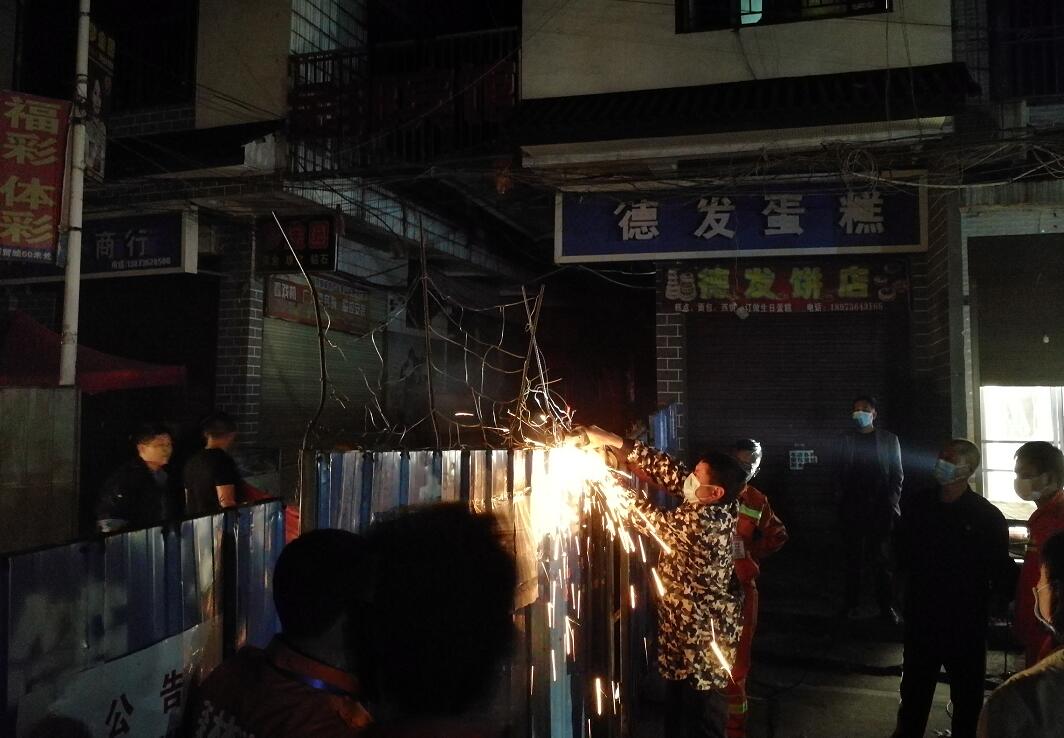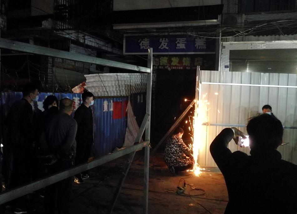 晚11时50分,在电钻的轰鸣声和大铁锤的闷响声中,隔离用的彩钢板被一块块拆除。(楚天都市报)