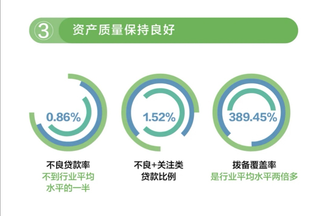数据显示,截至2019年末,邮储银行不良贷款率仅为0.86%,不到行业平均水平的一半;不良贷款与逾期90天以上贷款比例147.55%;拨备覆盖率389.45%。