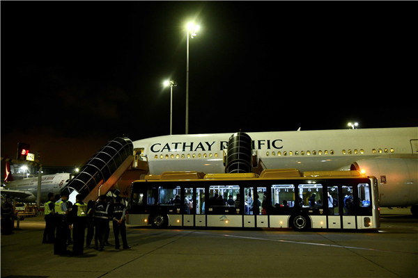 昨日傍晚6時許,今次首班機如期抵港,入境乘客落機後經抵港大堂自行解散,再接受家居強制檢疫14日。