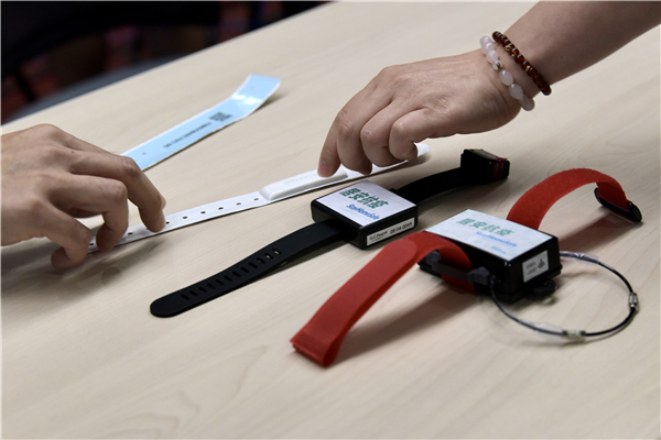 香港昨起向乘歐美航班抵港人士派發藍牙電子手環。中新社